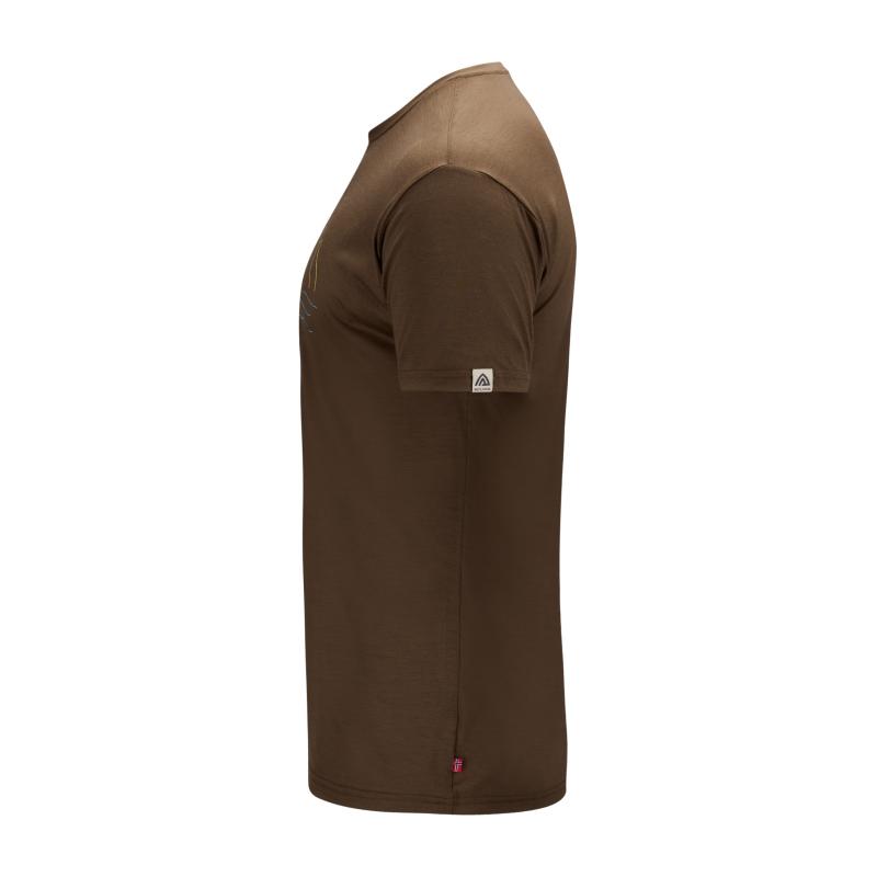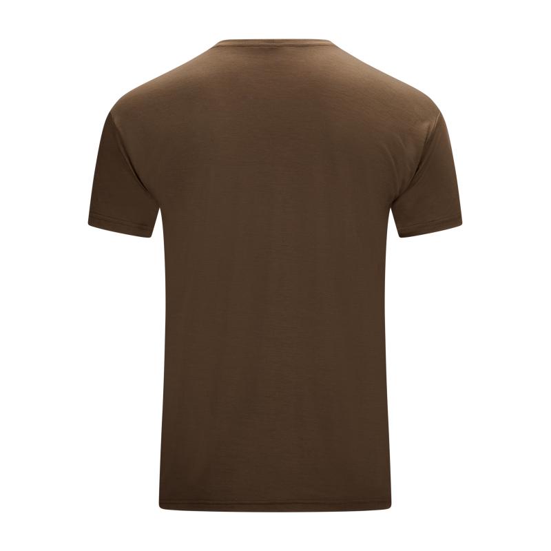 Merinoullen transporterer fuktighet effektivt bort fra huden og gir god komfort gjennom hele dagen, enten du er ute på tur, trener eller bare ønsker et funksjonelt og komfortabelt plagg til hverdagsbruk. Den klassiske T-skjortekonstruksjonen med rund hals gjør den enkel å kombinere med andre plagg, og den dempede Dark Earth-fargen gir et naturlig og tidløst uttrykk.