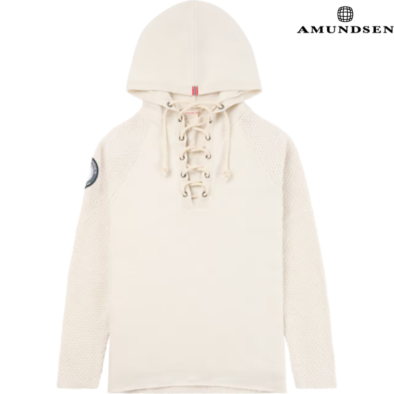 Amundsen Boiled Hoodie Laced Womens Oatmeal er en eksklusiv hettegenser for damer laget av 100 % merinoull. Ved hjelp av den tradisjonelle «kokt ull»-teknikken er plagget strikket i en stor størrelse og deretter krympet til riktig passform — noe som gir overlegen varme, vindtetthet og vannavvisning. Det tidløse designet inkluderer snøring i halsen og klassiske detaljer, hvilket kombinerer funksjon og stil på elegant vis.