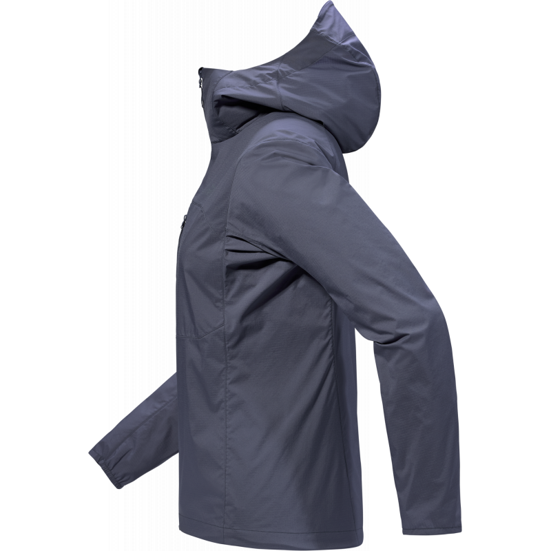 ArcTeryx Squamish Hoody Womens Stratus er en ultralett og pakkbar vindtett jakke for damer, utviklet for høy aktivitet i fjellet, på tur og i skiftende værforhold. Den kombinerer lav vekt med høy funksjonalitet og er enkel å ta med i sekken som et ekstra beskyttelseslag.