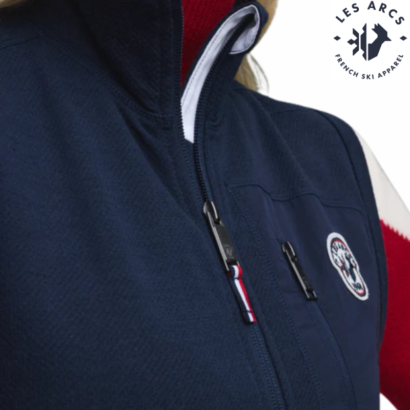 En funksjonell og komfortabel fleecevest fra Les Arcs — ideell som mellomlag under skalljakke eller som et isolerende lag alene på kjølige dager.