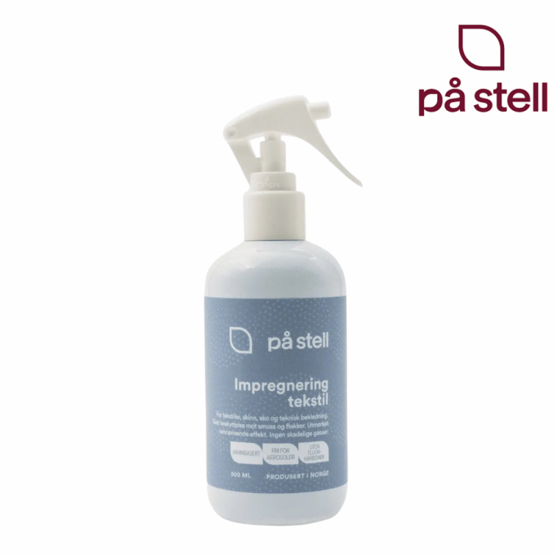 På Stell Impregnering Tekstil er en effektiv og miljøvennlig impregnering utviklet for å gjøre tekstiler vann- og smussavvisende, uten å påvirke pusteevne eller stoffets naturlige følelse. Produktet egner seg godt til yttertøy, barneklær, turklær, puter, vognposer og andre tekstiler som utsettes for fukt og skitt. Impregneringen er enkel å bruke og gir langvarig beskyttelse i hverdagen.