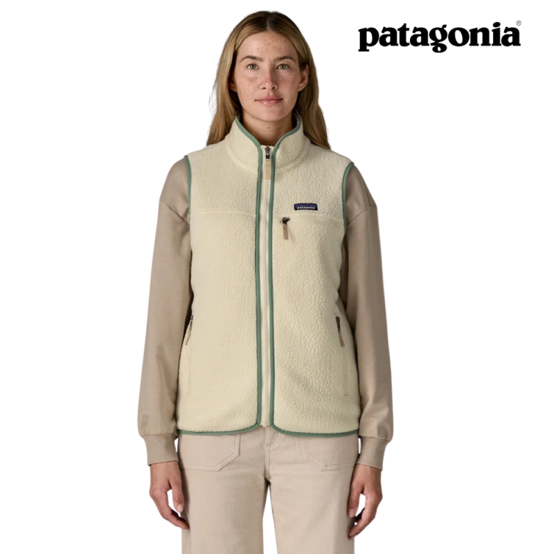 Patagonia Dame Retro Pile Vest Hvit med Grønn Søm