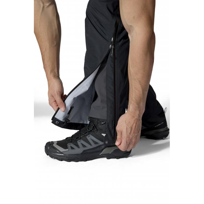 Justerbare benavslutninger gjør det enkelt å tilpasse buksen til ulike typer fjellstøvler. Kombinasjonen av lav vekt, pakkbar konstruksjon og solid værbeskyttelse gjør dette til en svært allsidig skallbukse for helårs bruk i fjellet.