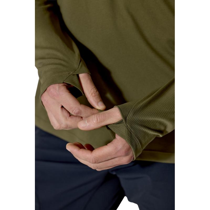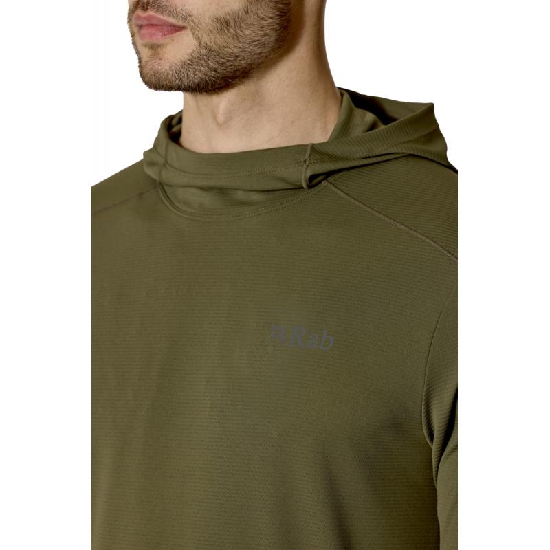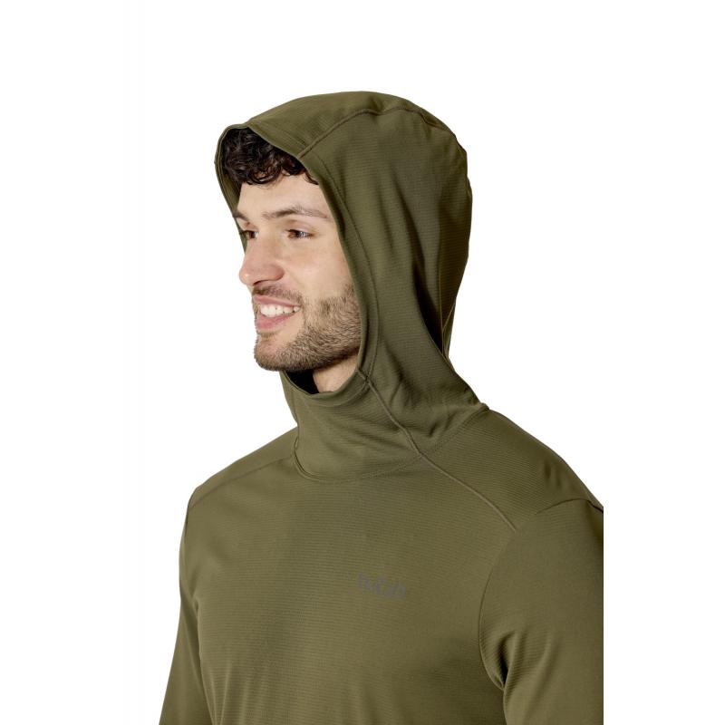 Rab Force Hoody Mens Olive er en lett og teknisk hettegenser for menn, utviklet for høy aktivitet i fjellet, på tur og til klatring. Den fungerer like godt som baselag på kjølige dager som et selvstendig plagg i mildt og solrikt vær.